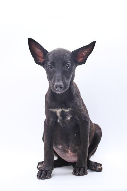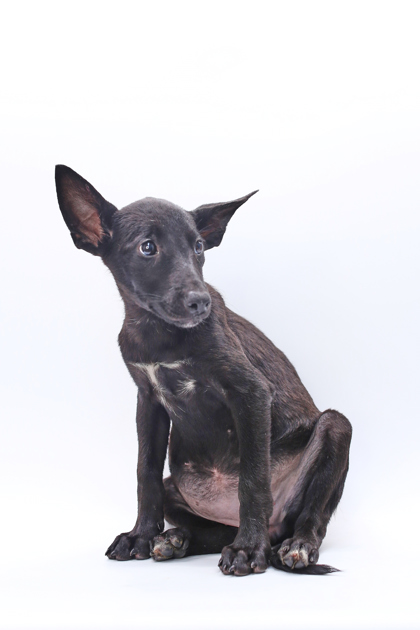 Polly has come a long way from a heartbreaking start. Found tucked away in a dirty horse trailer deep in the Arkansas woods, this resilient pup has shown nothing but sweetness and strength. She is absolutely stunningly gorgeous and highly intelligent. Her sleek black coat is super shiny and with love and training she is going to make an amazing companion!