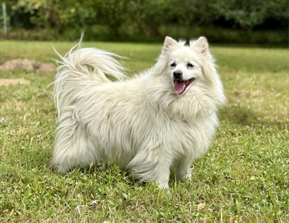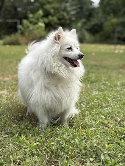 Gracie Lou is a lovely 11-year-old American Eskimo with a soft, snowy coat and a gentle, soulful spirit. She came to us with her best friend, Sadie Mae, after their family had to move and could no longer care for them. Gracie Lou is calm, affectionate, and enjoys the quiet comforts of home-soft blankets, peaceful naps, and the reassuring presence of a familiar friend. While her world has recently changed, her sweet nature remains as steady as ever. Gracie Lou is looking for a warm, loving home where she can spend her golden years feeling safe, cherished, and surrounded by love.