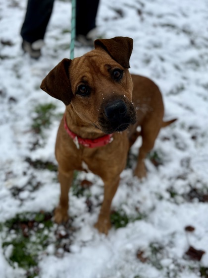 Lottie is a sweet Lab mix momma with a gentle soul and a heart full of love. Left at a Louisiana shelter during the late stages of pregnancy, she bravely delivered 11 beautiful puppies and cared for them with calm, patient devotion. Now that her babies are thriving, Lottie is ready for a forever home of her own-a place where she can finally be cherished. She travels well, enjoys quiet companionship, and has an easygoing nature that makes her a joy to be around. With her soft eyes, affectionate spirit, and steady, gentle presence, Lottie is sure to be a loyal and loving addition to a very lucky family.