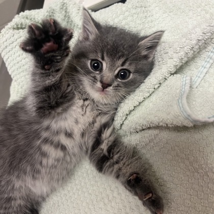 Earl is a handsome grey tabby boy from Mississippi with striking markings and an easygoing charm that wins hearts instantly. Curious and affectionate, he loves exploring new spaces, chasing after toys, and stretching out in a sunny spot for a well-earned nap. Earl's gentle nature shines through in every purr and head bump, making him a comforting and loyal companion. With his sweet personality and lovable tabby swagger, Earl is ready to bring warmth, friendship, and everyday joy to a lucky forever home.