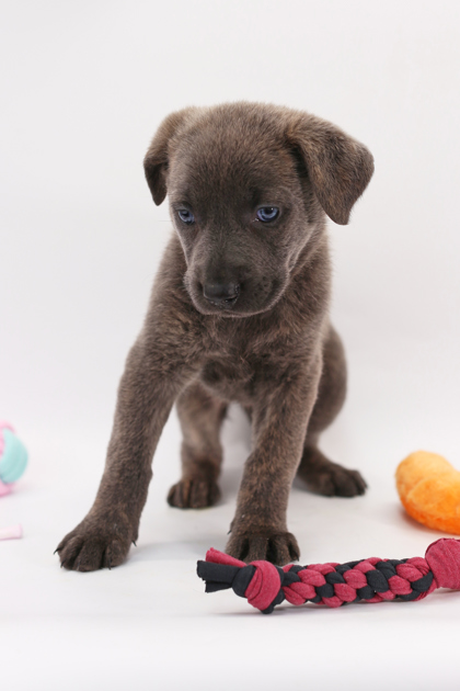 Meet this beautiful silver puppy, a striking little one born to devoted momma Roxy and raised with care alongside several equally adorable siblings. Growing up in a loving foster home has helped this pup develop a wonderful balance of curiosity, confidence, and sweetness. With a soft coat, bright eyes, and an irresistibly gentle nature, this youngster brings joy to every moment-whether exploring new toys, snuggling in for a nap, or greeting friends with happy tail wags. Now ready for a forever family, this silver sweetheart is sure to grow into a loyal, loving companion who fills a home with warmth and delight.