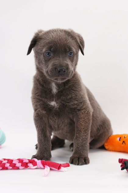 Meet this beautiful silver puppy, a striking little one born to devoted momma Roxy and raised with care alongside several equally adorable siblings. Growing up in a loving foster home has helped this pup develop a wonderful balance of curiosity, confidence, and sweetness. With a soft coat, bright eyes, and an irresistibly gentle nature, this youngster brings joy to every moment-whether exploring new toys, snuggling in for a nap, or greeting friends with happy tail wags. Now ready for a forever family, this silver sweetheart is sure to grow into a loyal, loving companion who fills a home with warmth and delight.