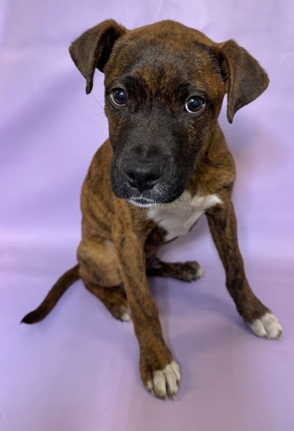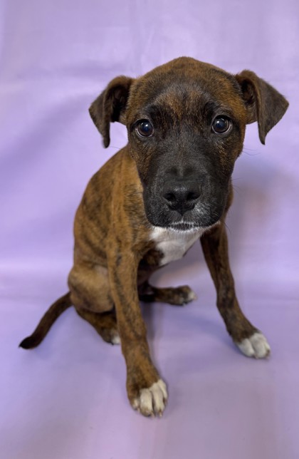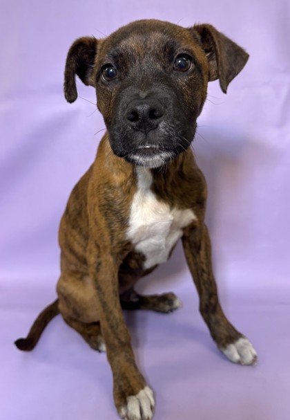 Sigurd is a 4-month-old brindle Boxer puppy who is nothing but sweet from head to toe. This handsome boy has a gentle, loving personality and truly enjoys being around people. He's the kind of puppy who wants to be included in everything, whether that's cuddle time on the couch or tagging along for family adventures.Sigurd would make an excellent family dog-his friendly nature and affectionate spirit make him a great fit for a home looking for a loyal companion. He's still young and eager to learn, ready to grow into the amazing dog he's meant to be with the right family by his side. Sigurd is available to adopt and can't wait to meet the family who will give him the loving home he deserves.