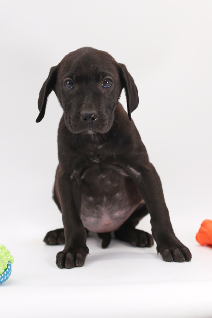 This sleek black puppy was surrendered by a Missouri family along with siblings and is now ready for a fresh start. A striking Lab/Presa Canario mix, this pup has a confident presence paired with a playful, curious nature. Still young and learning about the world, this puppy is eager to explore, soak up attention, and grow into a loyal companion. With the right guidance, socialization, and plenty of love, this pup will thrive in a forever home that's ready for puppy adventures and lifelong companionship.