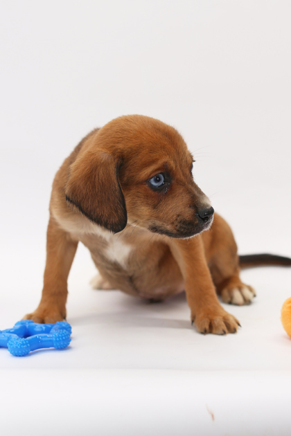 This lovable lab mix puppy came to us from Missouri alongside littermates and mom, Karma, and is now ready to find a forever home. Full of puppy curiosity and playful energy, this little one enjoys exploring, learning, and soaking up attention. Growing up with siblings has helped build social skills, and continued training will help set the foundation for a well-mannered adult dog. With a sweet nature and lots of potential, this puppy would be a wonderful addition to a family looking to welcome a loyal, loving companion and enjoy all the fun that comes with raising a young dog.