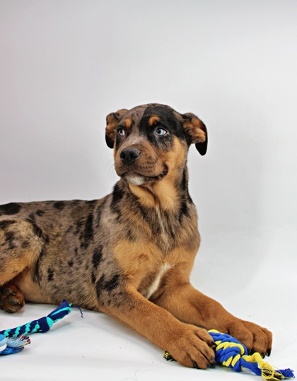 This handsome Australian Shepherd mix puppy from Mississippi is a total show-stopper with his striking blue merle coat and soulful eyes. He's a sweet, playful boy who loves to explore, romp around with his toys, and soak up every bit of attention he can get. Friendly and full of puppy curiosity, he's the perfect mix of fun and affection and will thrive in a home ready to help him learn and grow. If you're looking for a charming companion who's as beautiful on the inside as he is on the outside, this little guy is ready to be your new best friend.